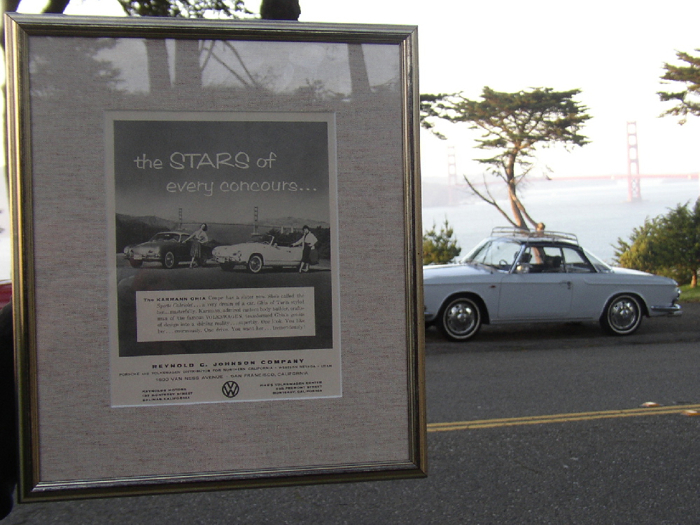 Back in the late 50s this same spot was chosen for the first Volkswagen advertisement featuring the Karmann Ghia coupe and the brand new cabriolet. Richard brought this ad along to show us and we all had little trouble visualizing ourselves being in that spot so many years ago.