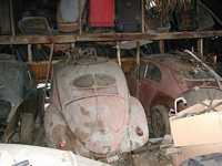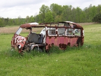 Tuesday morning the weather had improved a bit but as we were heading with it we were to find that we weren't out of it yet. We had added a newlywed couple yesterday to replace Jim Kikuchi who was heading back home. Cullen and Alexandria had been married on Saturday in Pennsylvania and spent their honeymoon with us for the next week. The lunch was a Disney Herbie gig at a minor league baseball game on the other side of Cleveland. To avoid the toll road we took a state highway paralleling Lake Erie. Lunch was not provided that day so we found a nice restaurant next door to the ballpark. The rain started up again sending the fans home early and chasing us to our cars as well. We were headed to Pennsylvania now and took back roads out of Ohio. We had to take a detour just before the border and someone expressed an urge for ice cream so we stopped in a little town at the Dairy Queen. Before leaving town we asked for directions to get through the rest of the detour Shortly after entering Pennsylvania we turned south for the Pittsburgh area where we were due for supper at Bilco Motors in Wexford. But shortly after going through yet another small burg called Greenville we passed what has to be a VW landmark in the area. As we went by Rachel called on the Walkie Talkie for us to turn around and stop so she could look for a carburetor to replace her still questionable unit. The owner of this collection was a Mr. Hoovler and was very glad to see us. Seems he had wanted to join us on our cruise but had too much work and was unable to get away. So when we showed up he quickly called his wife to ask her to bring the camera down for this big event. It was fun roaming the property seeing these quiet rain coated remnants of days gone by. After supper we were invited down to a local shop in Pittsburg before heading to our hotel. The building was in an old part of the city and looked to be older than the first auto.