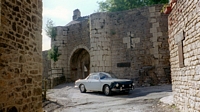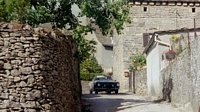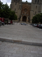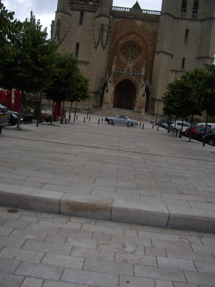 After breakfast at the hotel we made good time going south and picked up the rest of our lunch fixings when we stopped for gas. Switching back to 98 RON gas seems to also be helping the gas mileage. We ate at a rest stop and I walked around the circle several times to work out the kinks in my hip. Mary drove for awhile after lunch and I think she enjoyed it, at times getting up to 90mph. The mountains of central France are beautiful and were unexpected to this geography buff who went through life not knowing they exist here. Some time after I took over driving I saw a sign for Mende and decided on a detour. Mende promised, in the road sign, a really old bridge with a sort of upside down V shape. We saw a bridge like that on the way up the canyon but none in Mende. What we did see wa a very old church which we circled back to to get a shot of with the car. On the way back to the freeway we turned off at the strange bridge, which also advertised a medieval village. We drove up the hill to a fork in the road where we encountered a sign that I guessed meant that cars weren't allowed. After getting out to walk the rest of the way we saw a car go up the other fork so I decided to follow. At the top was another of those forbidden signs but I decided to play ignorant and drove down into the village. I'm glad I did. By the time we got back to the freeway it was getting on towards dinner time so after a few miles we dropped down into Millau rather than take the spectacular bridge that had recently been completed to span the whole valley. Its a spectacular sight from below. Dinner took much longer than anticipated so we stopped at a motel on the far side of town.