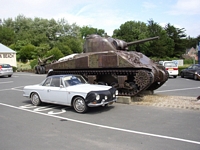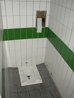 We got up at 8 something and found that Dave and Pat had already finished their showers and had coffee and oatmeal started. This early start and hot meal was a welcome change from the previous morning. Before leaving town we stopped for breads, fruit, and vegetables at a couple small shops. After taking a few pictures we headed for the freeway which eventually became one of the common toll roads in France. Just after the toll booth we stopped for a bathroom break where I was stunned to find a porcelain hole in the floor. After doing my business I was equally stunned to find that it flushed itself as I walked away. I needed to get a picture of this piece of French sophistication. At the Omaha Beach museum we spent an hour touring the excellent and stirring facility. We then went down to the beach where there was a memorial and had lunch in the camper. Then we were off to the American cemetery at Coleville. We solemnly strolled down long rows of gravestones for an hour before heading out for St. Michel. But Dave said he was wiped out from nights of bad sleep and Mary and I talked about what that would mean as we continued down the road. We had already lost one day between the Antwerp splitup and the previous late morning and we wanted to keep the schedule we had planned for the trip. So I concocted a plan to meet them in Paris at 3pm the next day and to convince them to finish a less aggressive route while we continued on. When we stopped for gas the weather turned sour so we skipped St. Michel in favor of finding a campground for Dave and Pat. By the time we had that done it was 6pm and still a long way to Paris. The toll road helped some but we ended up settling on Chartres, which I remembered has the cool cathedral with the unmatched spires. We found an Ibis and ended up making a reservation for the next night in Paris when I was finally able to get on the internet for the first time on the trip. My hip had tightened up in the cold damp weather and every time I got out of the car I hurt big time. A hot bath helped some but it was a bad night and I was concerned about being able to walk in Paris.
