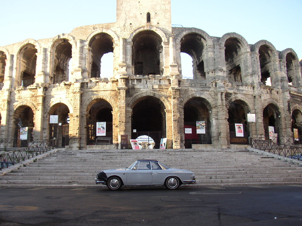 The early night refreshed us and we were up at 6am. We went into the center of Arle and took pictures of the car in front of the magnificent coliseum. Then we strolled through the huge farmers market picking up blackberries, baklava, and a few essentials for lunch. Then we went down to the coast and dipped our feet into the surprisingly cold Mediterranean. From there it was off to Geneva by way of Gap. The road was non stop curves for 50 miles and I had a blast. Shortly before the Swiss border we saw a miles long traffic jam going the other way that we decided must be headed for the Tour de France. With great disappointment I saw that here was another missed opportunity to see Lance. I had missed the last day of his first win by one day in 2000 and so I had planned our schedule originally to catch a stage in central France before losing all that time at the beginning of the trip. We tried stopping at a Best Western the other side of Geneva but it was a gagging 155 Euros so we pushed on to Louzanne and found a room there. The drugs have started to work so the trip is more enjoyable now.