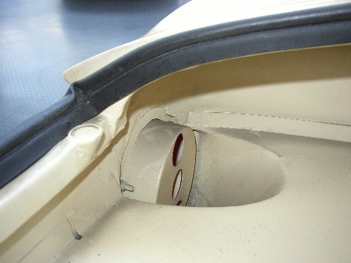 First, the rear vent on the design that was chosen didn't make it into production but these 2 pictures show how the vent was designed to direct cooling air to the engine compartment.
